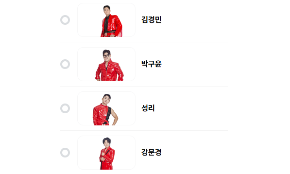 3. 참가자 확인: 출연 가수들의 정보를 확인한 뒤 응원할 가수를 선택하세요.